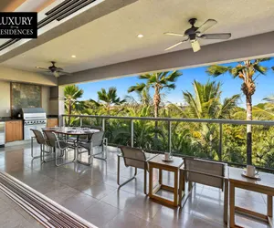 Downstairs, the carefully designed layout gives every guest their own space to recharge. The primary suite offers a king bed, walk-in closet, dual vanity, walk-in shower, and a deep soaking tub, your personal spa sanctuary. Step outside to your exclusive ground-floor lanai with lounge chairs, a peaceful oasis surrounded by tropical foliage. The second downstairs suite features a king bed and a full ensuite bathroom for added comfort and convenience. Completing the villa, the upper-level guest bedroom includes two full-size beds and its own private ensuite.