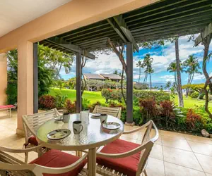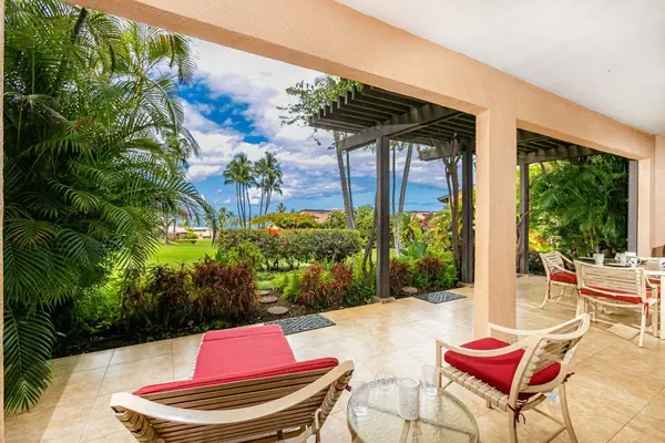 Welcome to Wailea Ekahi 34B where lush tropical foliage surrounds you and views of the majestic Pacific await! This updated 1 bedroom / 2 bathroom unit is the perfect setting for your Maui vacation. This ground floor unit boasts incredible ocean and garden views! Enjoy the sunset views and feel the breeze from the oversized private lanai! Your private lanai stretches across the living room to the primary bedroom where your private oasis awaits. The outdoor dining furniture and lounge chairs make the perfect setting for pupus (appetizers) and your favorite beverages while enjoying the ocean view.