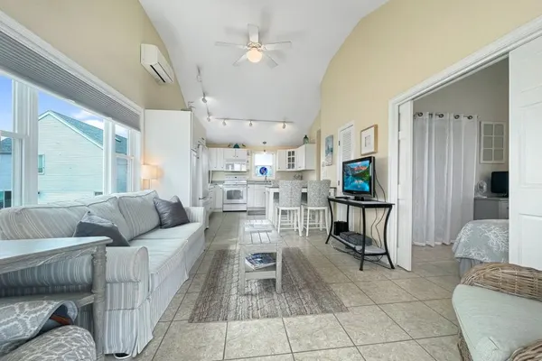 The unit features two bright bedrooms, including a master with a private 3/4 bath and its own private deck, and a second bedroom with two twin beds and a TV. The sunny living room has a pull-out sofa, TV, and cathedral ceilings, creating an open, airy space. The kitchen is sleek and contemporary, equipped with a dishwasher and all the essentials you need to prepare meals while enjoying incredible ocean views. A washer and dryer are included for your convenience. Air conditioning, ceiling fans, and two bathrooms ensure comfort throughout your stay.