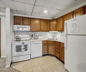The full kitchen is stocked with quality appliances and ample countertop space, making it easy to prep everything from hearty ski-day breakfasts to late-night snacks or reheated takeout from the onsite restaurant and bar.