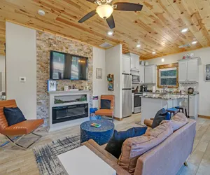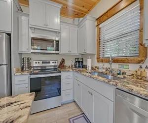 This three-bedroom cabin will have you feeling at home as you cozy up in the king-size bed or one of the two full-size beds.