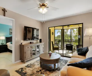 Further into the unit is the dining area that accommodates four people but there is additional seating at the kitchen bar to be able to enjoy a nice home-cooked meal. Relax in the main living area on the sofa* while watching some of your favorite television shows on the mounted flat-screen television! There is internet and cable provided for your use.