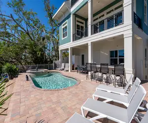 Freshly Squeezed is a luxurious five-bedroom, three full baths and one half-bath, canal-front vacation getaway with a heated swimming pool and spill-over spa with dock. It is spread out over four levels, making it perfect for large families or a group of friends. Its location is close to Estero Boulevard and Times Square, the central hub of Fort Myers Beach, with access to seven miles of white sugar sand beaches, restaurants, and boutiques, all within walking or biking distance. In addition, Trolleys run up and down the island. Many water activities are available, including parasailing, jet ski rentals, and fishing charters. This home is situated such that it provides quicker ingress and egress to and from the mainland. Sanibel Island, world-famous for its sea shells, and Fort Myers with its Downtown River District, and historic winter homes of Thomas Edison, Henry Ford, and Harvey Firestone, lie not far to the north, while to the south is Lover's Key State Park, Bonita Springs, and Naples.