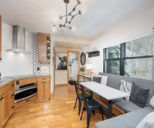 Take in views of the mountains and San Miguel River from the balcony of this updated one bedroom, one bathroom vacation rental property. Viking Lodge 210 features contemporary and clean finishes and furnishings, including a beautiful kitchen with an induction cook top, convection oven/microwave, and full-size refrigerator. Neutral colors and comfortable accommodations will have you relaxing between your Telluride adventures and outings. With its riverfront location and easy access to everything you need in town, this property is sure to create a convenient and memorable base for your mountain escape.