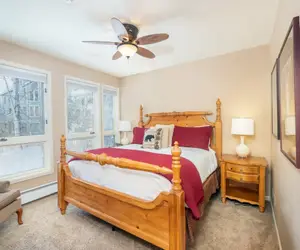 The ground floor of this condo offers a spacious great room with gas fireplace and plenty of seating and a dining table for six with french doors opening to the deck and River Trail. Enjoy your morning coffee at the breakfast bar or enjoy a home-cooked meal prepared in the fully equipped open kitchen. The master bedroom with en suite bathroom and the convenience of an in-unit washer and dryer on this level too.