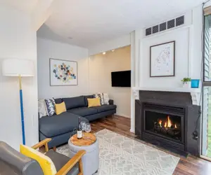Enter into the split level unit and store your jackets in the mud room/laundry room. Head down the stairs into the living area with fireplace, flat screen tv, and dining area. Off of the living area are both a full kitchen and a private deck. The living and dining areas offer tons of windows. Down one level from the living area is a queen bedroom and adjacent full bathroom. Up two levels from the living area is the master suite with king bed and en suite bathroom as well as a work nook and a second private deck. Up one more level is another spacious queen bedroom with an en suite bathroom, large closet, and two twin bunk beds.