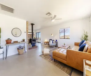 The newly renovated space has a clean and contemporary design, thoughtful amenities, and central heat and air to ensure you're always comfortable. Relish in a slow morning spent sitting on one of our two patios, sipping your coffee, and enjoying the views and wildlife. At night you can snuggle around the fire pit with a glass of wine and watch the breathtaking desert sunset.