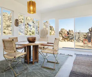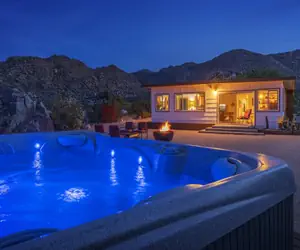 Come live out your desert dreams in our stylish contemporary home tucked into the hills of Joshua Tree. This property is secluded and surrounded by boulders. Conveniently located minutes from the west entrance Joshua Tree National Park. La Luna Azul boasts 2 bedrooms, 1 bath, a large bright living room, full kitchen, dining room with indoor fireplace, hot tub tucked into the boulders and an outdoor BBQ grill and fire pit with seating to sit back and relax and enjoy the stars above.