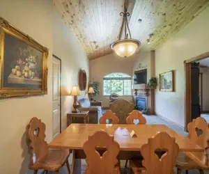 Upgraded features include beautiful natural stone slate floors and granite countertops. The bathroom includes granite surround, jetted tub & separate showers. The kitchen has stainless steel appliances and a unique European breakfast nook for dining near the living room. European handmade Swiss hardwood chairs, large crown molding & European inspired fireplaces for a relaxing and memorable experience.