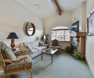 Upgraded features include beautiful natural stone slate floors and granite countertops. The bathroom includes granite surround, jetted tub & separate showers. The kitchen has stainless steel appliances and a unique European breakfast nook for dining near the living room. European handmade Swiss hardwood chairs, large crown molding & European inspired fireplaces for a relaxing and memorable experience.