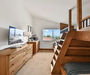 Relax in a remodeled one bedroom 2 bunk beds - queen on bottom, twin on top, one bathroom, dresser, flat screen HD television, full bath/shower with granite countertops and granite surround.