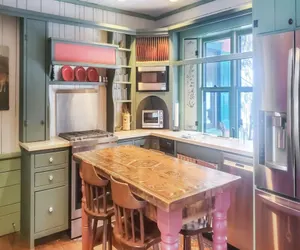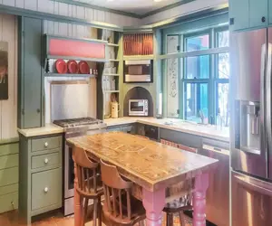 Upstairs, guests will find additional sitting areas, private bedroom suites, and a convenient laundry setup. The second wing, located above the kitchen, offers a secluded two-bedroom suite with its own sitting area and shared bath — perfect for families or friends traveling together.