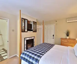 Inside the room, you'll find a comfortable queen bed to snuggle into after a long day of outdoor activities. Stay warm and toasty by the gas fireplace, perfect for those chilly nights.