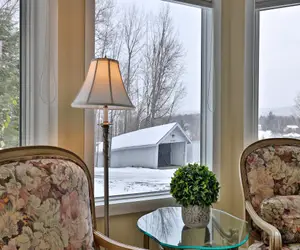 Inside the European Room, you'll find a luxurious king-size bed, perfect for a restful night's sleep. The room also features a gas fireplace, providing a warm and inviting ambiance for those chilly Vermont evenings. The ensuite bathroom is modern and well-appointed, with all the amenities you need to feel refreshed and ready for the day ahead.