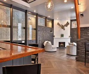 The Birch Ridge “shared” common areas were renovated in 2023 and feature an amazing A-frame Great Room with full bar area, 12' shuffleboard table, coffee station to get your caffeine fix, microwave, water cooler, beautiful gas fireplace, streaming TV, receiver with surround speakers, high-top tables, comfy sofas, swivel chairs and bar stools.