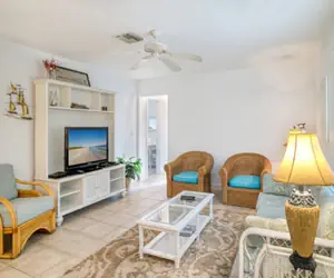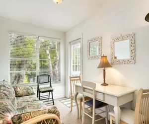 Vacation on lush Captiva Island in an updated old Florida Cabin on a 3-acre site right on the Bay. Inexpensive but fully furnished.