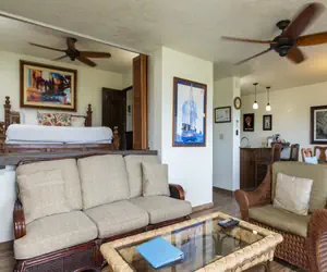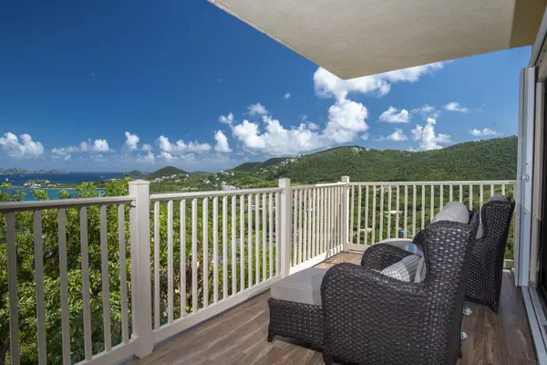 If you are looking for great accommodations on St. Thomas, why not stay in the best condominium development in St. Thomas? This updated hilltop villa with free Wifi offers expansive island and water views. This spacious one bedroom villa offers all the comforts of home. The large living area with sleeper sofa, reading chairs, and a flat screen TV is the perfect place to relax after a day exploring the islands. The elevated bedroom with king size bed with temperpedic mattress allows for direct views of the water and islands. The renovated bathroom offers a large shower and vanity area. The guest laundry services, resort lobby and activities center are just a couple minutes walk downhill from this unit. The hilltop pool is located just around the corner. Parking is conveniently located steps away from villa's entry.