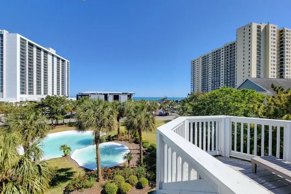 As you enter, your eye is drawn through the living space to the large screened‑in porch, where peek‑a‑boo ocean views and views of the Currents Waterpark create the perfect coastal backdrop.