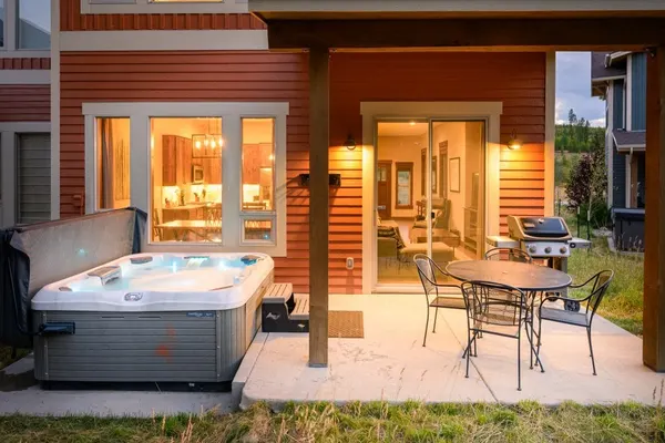 The kitchen is a chef’s dream, boasting stainless steel appliances and a granite countertop bar that seats four. It’s well-equipped for all your cooking needs, including both drip and Keurig coffee options. Enjoy meals at the classic wood dining table that seats six. Surrounded by trees, this townhouse offers a secluded feel. Step out onto the patio, fire up the gas grill, and dine alfresco at the table for four, all while enjoying the crisp mountain air.