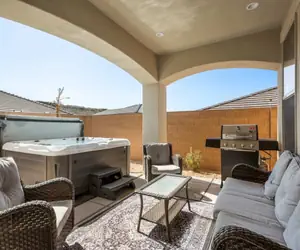 Sienna Hills Hideaway is the perfect standalone home for your next getaway to Southern Utah. This beautiful home is big and roomy with plenty of room to spread out and relax. The 5 bedrooms and 5 bathrooms accommodate all your needs, enjoy the built-in bunks in the bunk room! So fun. Having your own private hot tub will be a great amenity to enjoy at the end of the day to help provide a restful night's sleep. There are 2 living spaces for enjoyment and the kitchen is loaded with all you will need to prepare and serve up your family's favorites! Come visit and stay at this great Hideaway in Sienna Hills!