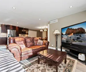 Walk right out the slider door to a large beautiful 16' X 40' deck with all the amenities such as, an 8' X 8' - 5 person hot tub, a propane fire pit with a water feature, a large grill, a table that seats 6, a 3 person swing, 2 zero gravity lounge chairs, and a wood fire pit to relax and enjoy the beautiful quiet view. This is a very special tranquil location that sits in the city with a very rural feel. Its a wonderful place to be for the winter to cozy up next to the fireplace with warm fuzzy blankets watching the snow fall and wildlife through the big windows. Its almost always sunny here! The house is very modern.