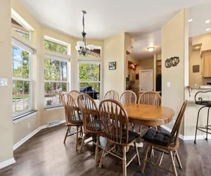 - The formal dining area has a table that seats 8, or you can enjoy your meals out on the spacious multi-level deck, with an outdoor dining area and gas grill all surrounded by views of granite peaks, pine forest and rolling plains.