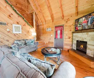 Unwind and relax in the inviting living room, where warmth and comfort meet rustic charm. The heart of the room is the cozy electric fireplace, perfect for snuggling up on chilly mountain evenings or enjoying a peaceful morning coffee. Warm rustic wood accents create a welcoming atmosphere. At the same time, the queen sofa sleeper provides a comfortable spot to rest your head and a matching loveseat seat for relaxing or enjoying a movie night on the flat-screen TV. With plenty of natural light pouring in through the large windows, you can enjoy the beautiful Smoky Mountains scenery. Make yourself at home in this charming space, where relaxation and entertainment blend perfectly.