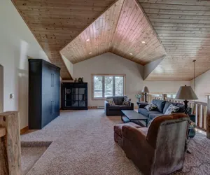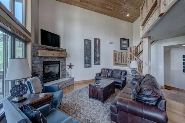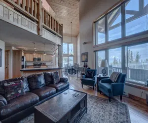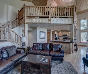 Offering 1996sq.ft. of living space, with 3 Bedrooms and 2.5 Bathrooms, a large open great room with an expansive pine vaulted ceiling and picturesque windows flood the space with tons of natural sunlight and features a cozy fireplace and loft area, all designed with rustic and warm “Urban-Chalet” style furniture and décor. A beautiful kitchen, fully equipped and includes a full-size refrigerator, stove, microwave, sink, dishwasher, custom cabinetry and centered around a huge wrap-around island with seating for 4 and an additional breakfast nook, perfect for entertaining and brings everyone together. This chalet also features an entertainment space on the lower level, a laundry room with two washers and dryer, free Wi-Fi, large TV's and a large deck with a BBQ grill and outdoor jacuzzi hot tub, all surrounded by breathtaking panoramic mountain views!