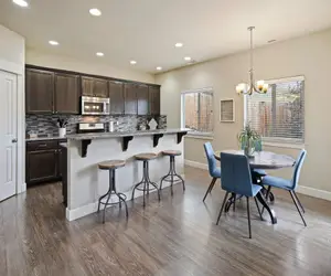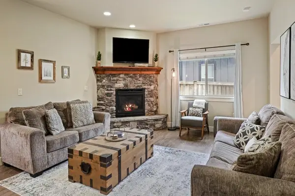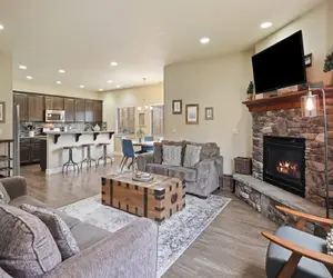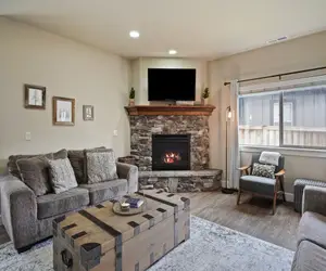Step into a spacious, open-plan living area designed for comfort and connection. A warm fireplace sets the stage for cozy evenings, while modern décor and abundant natural light create an inviting atmosphere for relaxing or entertaining after a day of exploration.