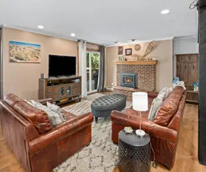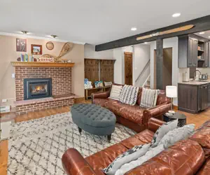 The dining room table will fit 8 with additional seating for 3 at the kitchen island. The living room is large and welcoming; you will want to escape here and relax after a busy day in Steamboat Springs. This room has plush furniture, a gas fireplace, and a large smart TV. There is also a convenient half bathroom located on this level.