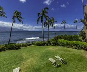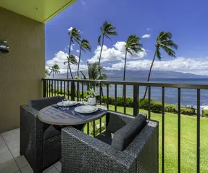 Step outside to the lanai, where you'll be greeted by breathtaking ocean views. The seating area for two is an ideal spot to relax, unwind, and soak in the beauty of the surroundings. Marvel at the sight of turtles playing at the shoreline or watch humpback whales during the winter months. The lanai offers a front-row seat to nature's spectacular show.