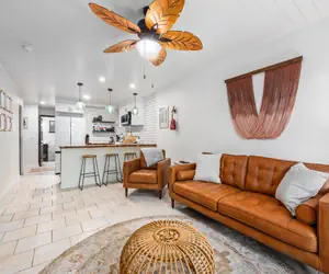 Tropical-Inspired Bedrooms: Drift into a peaceful slumber in our thoughtfully appointed bedrooms, each adorned with island-inspired decor, plush bedding, and ceiling fans to keep you comfortable during balmy nights.