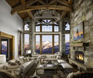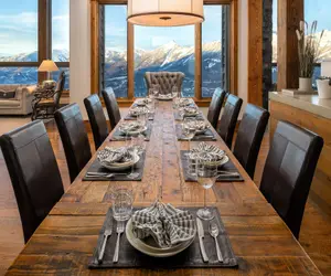 The summit house of Cowboy Heaven on Spur Road proves true to its name immediately upon entering the home featuring accents of vintage Western furnishing throughout. Tucked into the mountainside of Lone Mountain, this Montana lodge invokes tranquility for those who call it home.