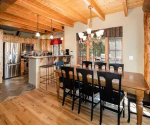 Just off the mudroom, pull your car into the heated garage to keep it out of the elements, or grab some extra wood for the wood-burning fireplace in the living room, the ultimate mountain ambiance.
