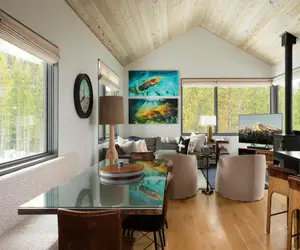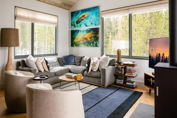 Nestled in whispering Montana pines and surrounded by millions of acres of Yellowstone preserve in the heart of Big Sky, this newly constructed lakeside cabin strikes the perfect balance between traditional and modern mountain living.