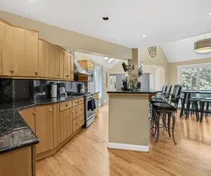 With five beautifully appointed bedrooms (and an additional private room attached) this home can comfortably accommodate up to twelve guests. The master suite features a luxurious king-size bed and an en-suite bathroom with a spa-like atmosphere, including a soaking tub and a separate shower. The additional bedrooms offer cozy sleeping arrangements and share well-appointed bathrooms.