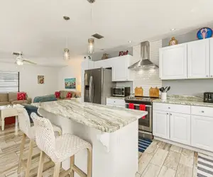 Welcome to Lazy Lobster, a three-bedroom, three-bath stilt home that has two levels, with the lower level having its kitchen, bedroom, living area, and bathroom, making it perfect for a large family or group of friends to all be in the same location, yet each having their privacy. This recently renovated vacation getaway has a brand new pool and spa, completing a gorgeous backyard oasis, located in a quiet neighborhood at the northern end of Estero Island. Less than a 2-minute walk to Estero Boulevard and 7 miles of white sugar sand beach accessed at Beach Access Point 33. There is a wide choice of restaurants and nightlife within walking or biking distance. Many water activities are available, such as parasailing, jet ski rentals, and fishing charters. Amenities include complimentary WiFi, air conditioning, ceiling fans, all linens and towels provided, and a laundry room on the lower level.