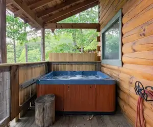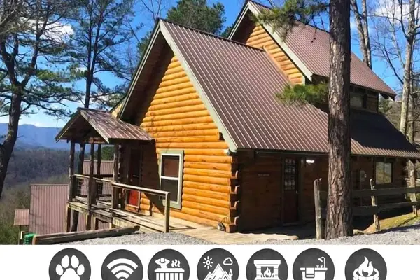 Escape to the serenity of the Great Smoky Mountains at Chelle's Sanctuary, a charming retreat in the heart of Townsend, Tennessee! This cozy 2-bedroom, 2-bathroom cabin comfortably sleeps up to six guests and is perfect for families or friends seeking a relaxing getaway. As you step inside, you'll be greeted by the warm glow of the fireplace and the rustic charm of the natural wood accents. The open-concept living area features a plush leather sofa sleeper, a loveseat, and a flat-screen TV, perfect for watching a good movie or enjoying quality time together. The fully equipped kitchen has everything you need to prepare delicious meals and snacks, and the dining table seats four for comfortable mealtimes. And when you need to stay connected, don't worry - free WiFi is available to keep in touch with loved ones back home. After a day of exploring the Great Smoky Mountains National Park, unwind and enjoy the mountain views on the private deck; take a soak in the hot tub or by the fire pit. With its perfect blend of comfort, convenience, and natural beauty, this charming cabin is the perfect choice for your next Smoky Mountain getaway!