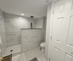 The primary bedroom is the perfect retreat, featuring a plush king‑size bed, direct access to the balcony, a convenient desk for remote work, and a beautifully remodeled en‑suite bathroom with a large walk‑in shower.