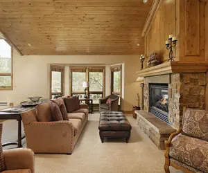 • The ambiance of Residence 08 is warm and inviting, with mountain views that create a serene backdrop for your stay. The open-concept living area is perfect for relaxation, featuring plush seating and a fireplace that adds a touch of warmth on chilly evenings. The fully equipped kitchen boasts updated stainless appliances, a Cuisinart coffee maker and ample counter space, making it easy to prepare meals and entertain.
