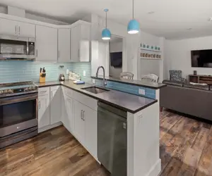 Convenience Included: La Pasta doesn't skimp on practicality. A separate laundry closet houses a washer and dryer, making it easy to keep your clothes fresh during your stay. Each of the four bedrooms features a smart television, ensuring everyone's entertainment needs are met. The Primary bedroom boasts a king bed and ensuite bathroom, while the second and third bedrooms offer queen beds. The fourth bedroom can be configured with two twin beds or a king bed, depending on your preference. Bathrooms with tub/shower combos and walk-in showers add to the convenience. Den has pull out couch separate from main living room with door for privacy.