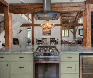 This 3 bedroom 3 bath unit, The Common Man, boasts an impressive 2,000 square feet of living space, making it the ideal choice for families or groups of friends. Named after the third and final restaurant to occupy the building, This very special 2000 square foot luxury unit that sleeps 8. You need to walk up 4 steps to the unit and two bedrooms are on the second floor. This two story unit is is very reminiscent of the last and most famous Restaurant that was housed in this barn.