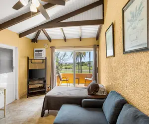 • Luxurious King Size bed with a Cozy Caribbean View overlooking our beautiful pool.