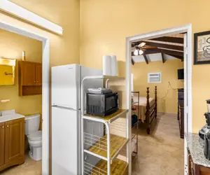 • Stove with oven, microwave, coffee pot provided.