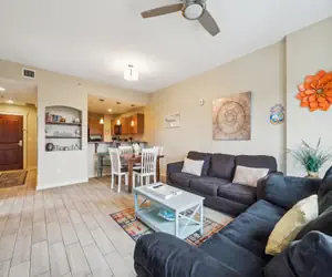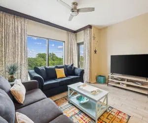 This stylish one bedroom is fully furnished with a full kitchen, living room, dining area, and private balcony. Being on the pool deck allows for easy pool access, making it perfect for a family getaway!