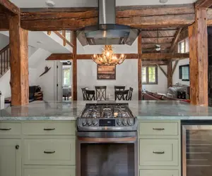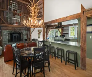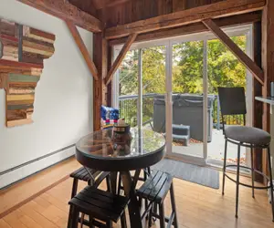 Unit #3: This 3 bedroom 3 bath unit The Common Man, boasts an impressive 2,000 square feet of living space, making it the ideal choice for families or groups of friends. Named after the third and final restaurant to occupy the building, This very special 2000 square foot luxury unit that sleeps 8. You need to walk up 4 steps to the unit and two bedrooms are on the second floor. This two story unit is is very reminiscent of the last and most famous Restaurant that was housed in this barn. The beautiful grand fireplace is still the focal point of this space and we were able to incorporate many fun elements from the original barn.