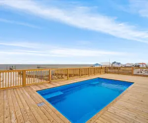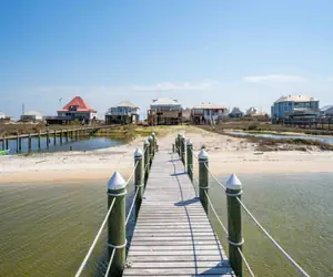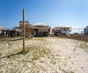 Experience the epitome of coastal luxury at this breathtaking two-story waterfront beach house at The Anchored Lighthouse on Dauphin Island. Elevated to offer panoramic views, the property features a ramp leading to a back deck, creating a seamless connection between indoor and outdoor living. The first floor boasts four bedrooms, each with a private bathroom, an open floor plan that includes a kitchen, dining room, and living room, as well as a dedicated laundry room. The second floor offers versatile sleeping arrangements with five full beds, complemented by a wet bar, a sitting area with a large TV, and two charming window nooks. The outdoor oasis, complete with a private and heated pool on the back deck, invites you to savor the coastal breeze, making this residence a haven for both relaxation and entertainment—a true gem for those seeking a refined coastal lifestyle on Dauphin Island.
