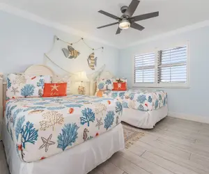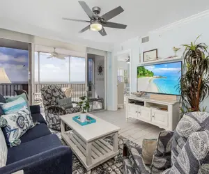 Welcome to Beach Villas, your tropical beachfront vacation destination in paradise located at the quiet northern end of Estero Island. This two-bedroom, two-bath fourth floor above ground level, corner gulf-front condo has a beachy/nautical décor and a 180-degree view of the Gulf of Mexico. It is a short 15-20 minute walk to Times Square and the many boutiques, restaurants, and nightlife at this end of the island, including the new Margaritaville Resort. Guests at this resort have access to their on-site pool and patio with BBQ grills, tables, and chairs, all surrounded by a privacy fence. Close proximity to the Matanza Pass Bridge offers easier ingress and egress, making Sanibel Island, the downtown Fort Myers River District and Edison Winter Home, as well as Southwest Florida Regional Airport all within a 20-40 minute drive. Off-street covered and open self-parking is included with your stay. Bellman's trolley and carts are available to make arrival a breeze. Amenities also include central air conditioning, ceiling fans, complimentary WiFi, private laundry, and linens and towels are provided. Pool was resurfaced in August 2025.
