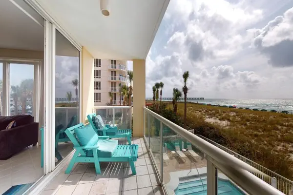 Welcome to this upscale and spacious 3 bedroom / 3 bathroom end-unit condo located on Navarre Beach. Enjoy the emerald green waters and sunsets on the private wrap around balcony with stunning 1st floor views of the Gulf of Mexico and views of the Sound (Inter-coastal Waterway). There is a large swimming pool and hot tub.