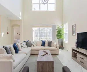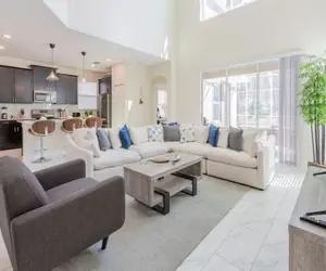 The Retreat at Champions Gate - Kissimmee, Florida is a new upscale gated resort community located just 12 miles from Walt Disney World. This luxury home sits nestled just outside of Orlando, Florida, and will quickly become one of the most desired locations in the Orlando area. During your stay, you will enjoy this well-appointed home that has been designed and decorated to provide you and your family an abundance of luxury amenities and leaves you well equipped to vacation with all the usual items you would expect to find at home. The Retreat at Champions Gate is only a 30-minute drive from the Orlando International Airport and is situated central to all of Orlando’s famous attractions. This spacious 5 bedroom holiday villa can comfortably accommodate a larger family or group of up to 10 people.
